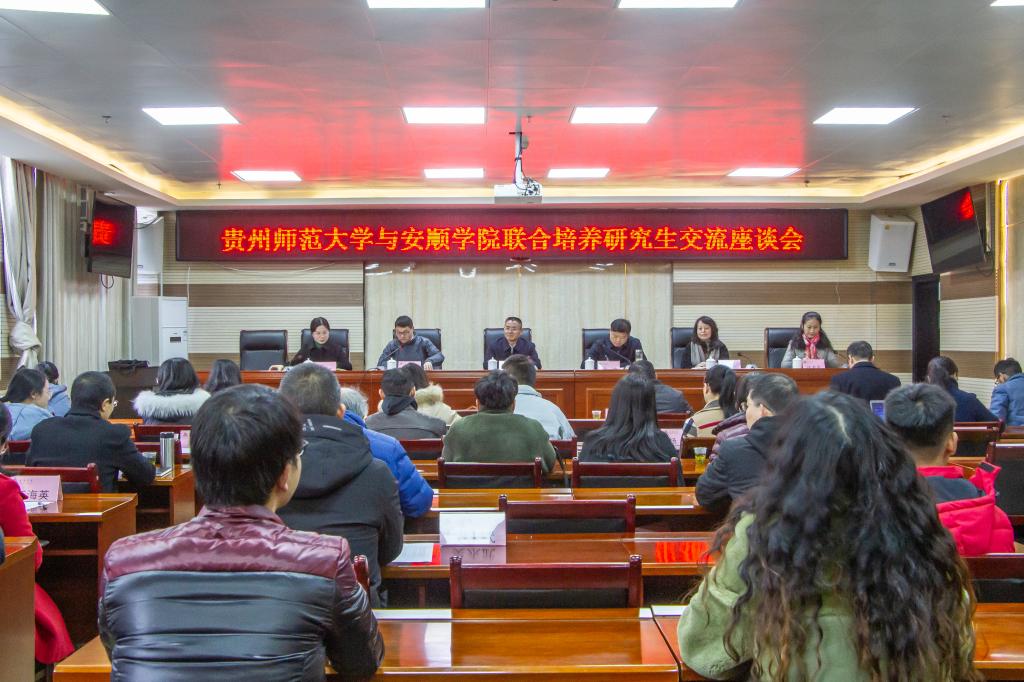 贵州师范大学联合教育办公室主任李思维、安顺学院宣传部部长殷红敏、安顺学院教育科学学院院长李镇译、数理学院院长庄中文、人文学院院长胡赤兵、党政办副处长肖青民、科研处副处长石恪、农学院副院长张玉波,贵州师范大学第一导师、安顺学院参与联合培养研究生指导的第二导师及15名第一批联合培养研究生参加会议。(文/图:宣传部 李尧睿/王键、张红仙)