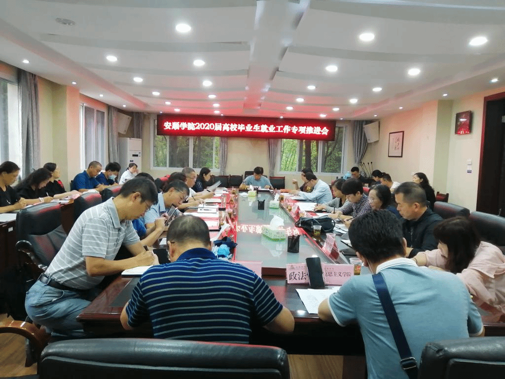 8月13日上午,安顺学院在行政楼二楼会议室召开2020届高校毕业生就业工作专项推进会。安顺学院校长陈云坤、纪委书记蔡红英、副校长韦英出席会议,各二级党委书记、院长,相关职能部门主要负责人参加会议。会议由韦英主持。