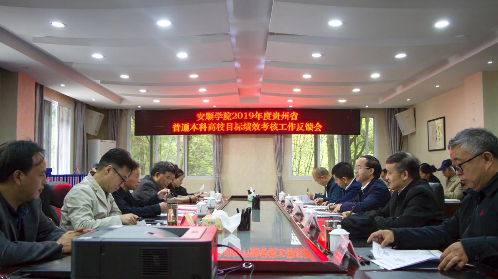 2020年5月26日,以贵州省教育厅原巡视员邓厚勇为组长,贵州大学党委副书记骆长江、贵州理工学院党委副书记高勇为副组长,贵州大学科技学院党委书记范伟,贵州理工学院党委组织部副部长、党建工作领导小组办公室主任徐元敏、贵州省教育厅安稳处干部叶秋萍为成员的省教育厅考核组对我校2019年度加快发展目标绩效完成情况进行考核。安顺学院党委书记罗荣彬、校长吴次南、党委副书记陶文彩、副校长令狐荣涛、郭本华及相关部门负责人参加汇报会和反馈会。会议在行政楼二楼会议室进行,邓厚勇主持会议。