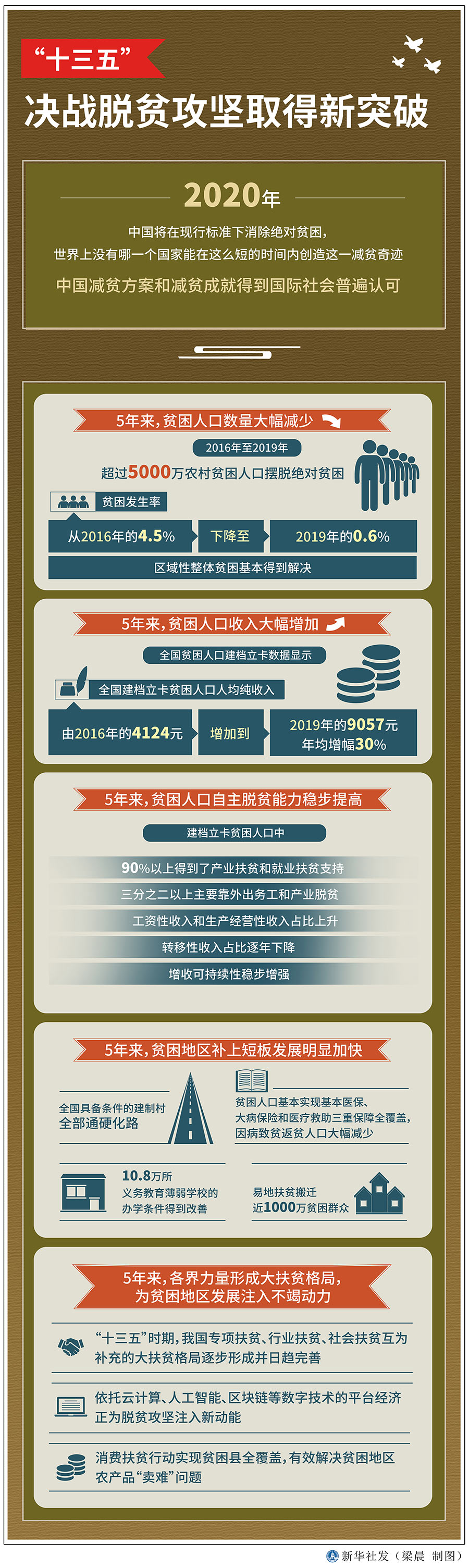 “十三五”时期,我国专项扶贫、行业扶贫、社会扶贫互为补充的大扶贫格局逐步形成并日趋完善。依托云计算、人工智能、区块链等数字技术的平台经济正为脱贫攻坚注入新动能。消费扶贫行动实现贫困县全覆盖,有效解决贫困地区农产品“卖难”问题……通过线上线下相结合,汇聚起社会各界参与脱贫攻坚的强大合力。