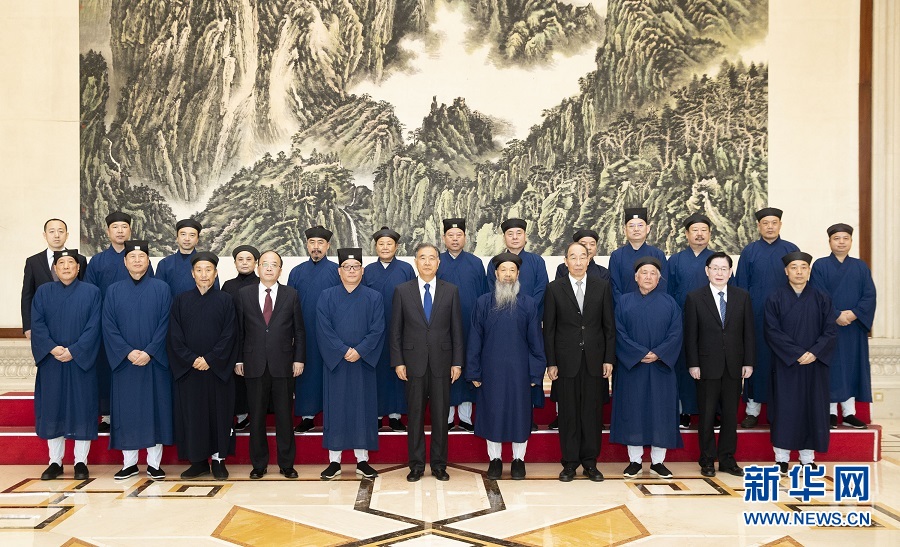 12月4日,中共中央政治局常委、全国政协主席汪洋在北京分别会见中国佛教协会、中国道教协会第十届理事会领导班子。这是汪洋会见中国道教协会第十届理事会领导班子。新华社记者 黄敬文 摄