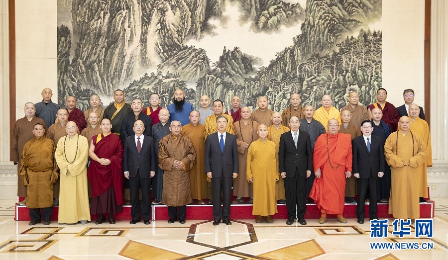 12月4日,中共中央政治局常委、全国政协主席汪洋在北京分别会见中国佛教协会、中国道教协会第十届理事会领导班子。这是汪洋会见中国佛教协会第十届理事会领导班子。新华社记者 黄敬文 摄