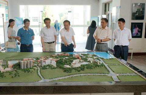 安顺学院党委书记罗荣彬(右三)、党委副书记陶文彩(右一)向安顺市政协副主席贺未泓(右二)介绍校区建设发展规划。