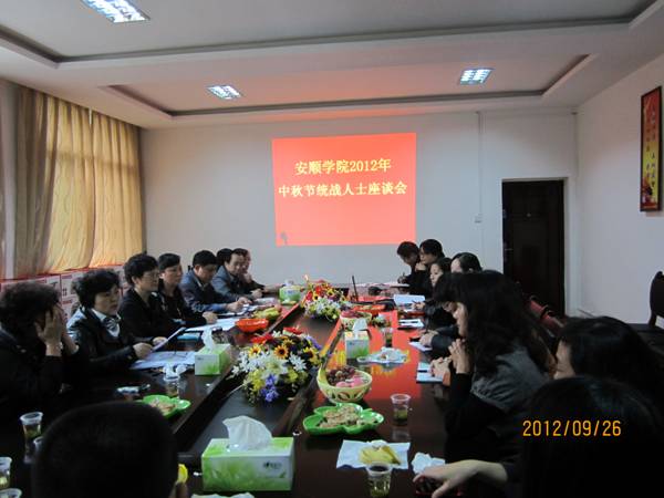 9月26日下午,学院党委统战部民主党派活动室组织召开“2012年中秋节统战工作座谈会”。学院党委委员、纪委书记王之瑞出席会议并致辞。参加座谈会的有学院各民主党派负责人,市、区政协委员,无党派代表人士,侨眷、台属代表及相关职能部门负责人。会议由党委统战部部长刘成玉主持。